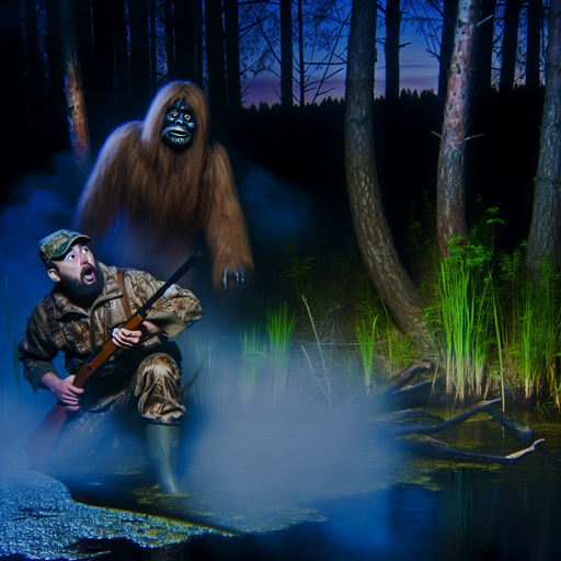 In a chilling encounter near Black River, Rowdy Ditto, a duck hunter, witnessed a massive nine-foot-tall Bigfoot approach him in broad daylight, its curious yet fearful expression haunting him as it effortlessly vanished into the floodwaters.